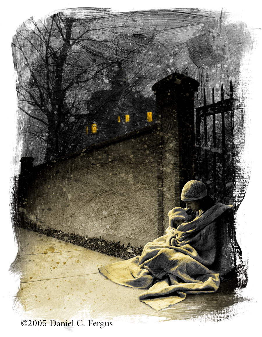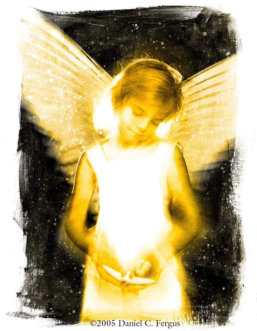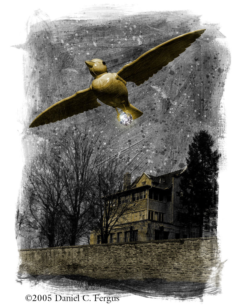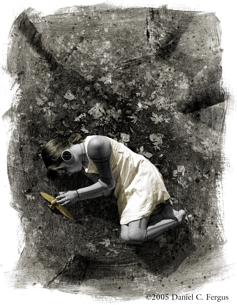 Oscar Wilde's The Happy Prince has always been one of my favorite stories. In 2005 I wrote The Happy Robot—which puts a 21st century spin on the tale—and created a series of digital illustrations for it. The robot (yes, she's crying; she's no longer happy at this point in the story), started as a photo of my daughter Rachel, which I took into Photoshop and manipulated (anyone recognize where her ear came from?). The robot bird was a 3-D model that I created with Infini-D. Other elements include photos of trees, paint spatters and strokes, tree bark, and other fun stuff. Click on the thumbnails below to see more of the illustrations. If you have a Flash plug-in for your browser, you can read the story complete with illustrations (you may have to disable your pop-up blocker to see it). I also created a short animated film narrating the introduction to the story.