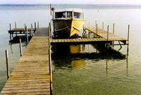 One summer when I was young I drew a picture of our boat (the Pilsir) and our dock (alas, my drawing is long gone). While we were in Michigan in 2004, I challenged my girls to do the same.